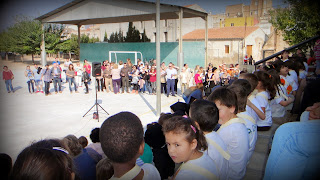 Aquí teniu una mostra de totes les activitats que vam fer: Primer de tot ens va parlar de la tradició del Halloween; després, ens va ensenyar paraules relacionades amb la festa i per veure si ens en recordàvem no ens va fer un examen, no, ens va fer un joc! Quan ja havíem agafat una certa confiança, ens va fer una mica de por traient d’una bossa: aranyes (spiders), carabasses (pumpkins), un ratpenat (a bat), un fantasma (a ghost), una serp (a snake), un barret de bruixa (a hat)... i, fins i tot, un esquelet (an skeleton). Quina por! però... quina xalera! I a la fi de la festa, com sempre: el ball.